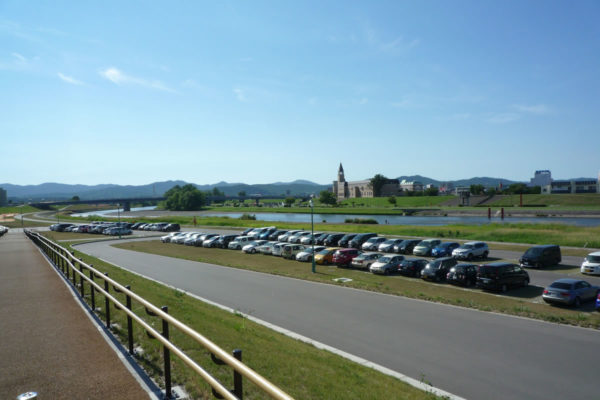 駐車スペース(無料)があるため、車で乗り入れることも可能です。 ※ただし、音楽大行進や花火大会などのイベント時には封鎖されて駐車できなくなります。
